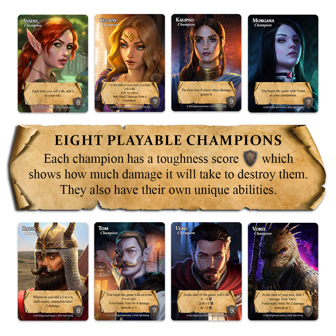 This is the full game. Includes eight playable champions, the adventure deck, and spare Gold Coins and Food cards to form starting hands. 2-8 people can play. 106 cards total.