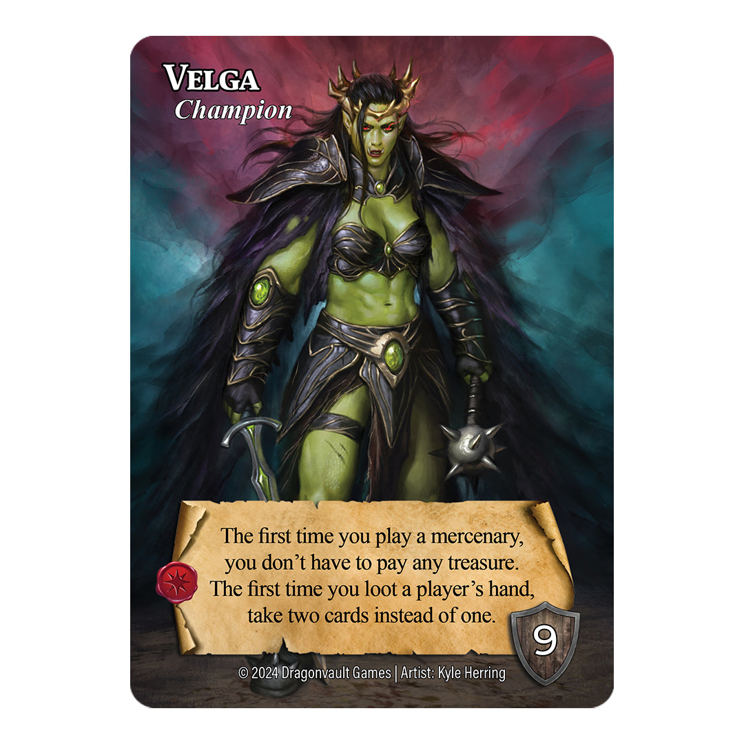 This limited edition version of Velga from Dragonvault: Evernight Vale features alternative artwork by Kyle Herring.